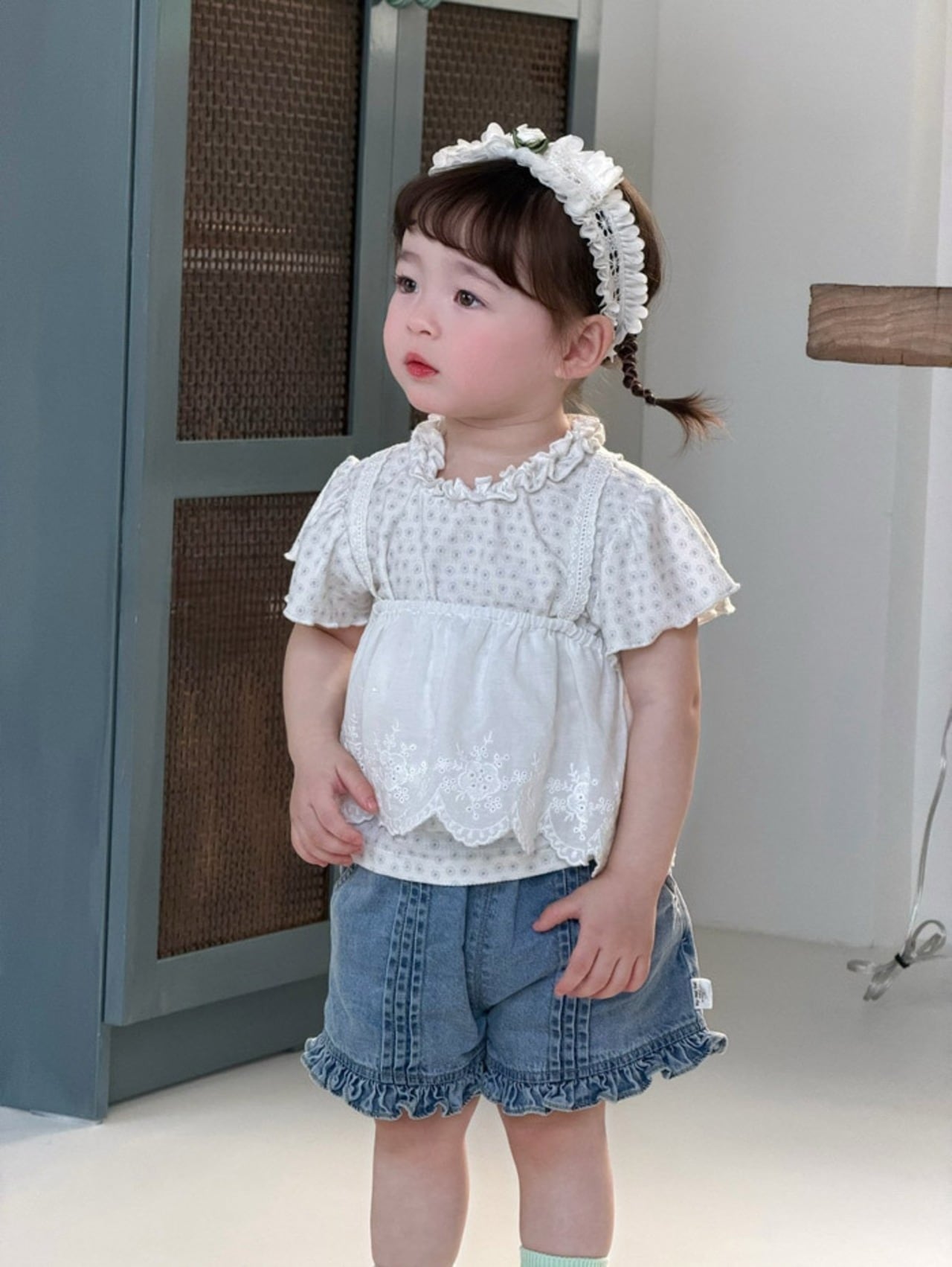 【予約】frill pintuck denim short pants / my daughter