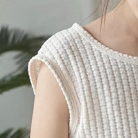 涼しいポリエステル混紡にスパンデックスを加え、快適に着られるスリーブレスです。